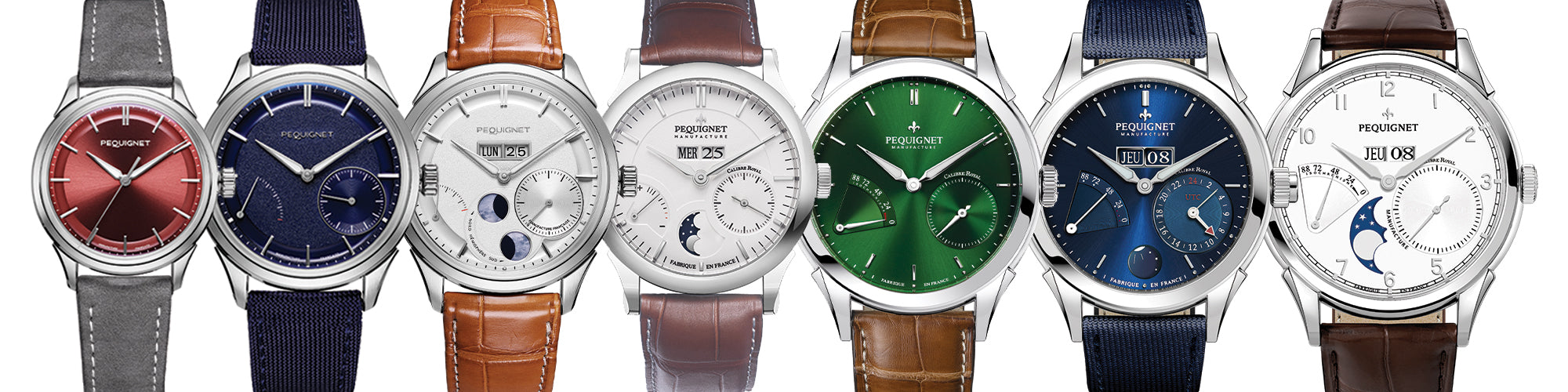 Elégantes et raffinées, les montres de la collection Royale sont équipées de deux mouvements français conçus et développés par la Manufacture Pequignet en France, le Calibre Royal®