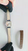 Insérez l’extrémité de la barrette (le côté opposé à la petite tige) dans le petit trou de la corne de la montre.