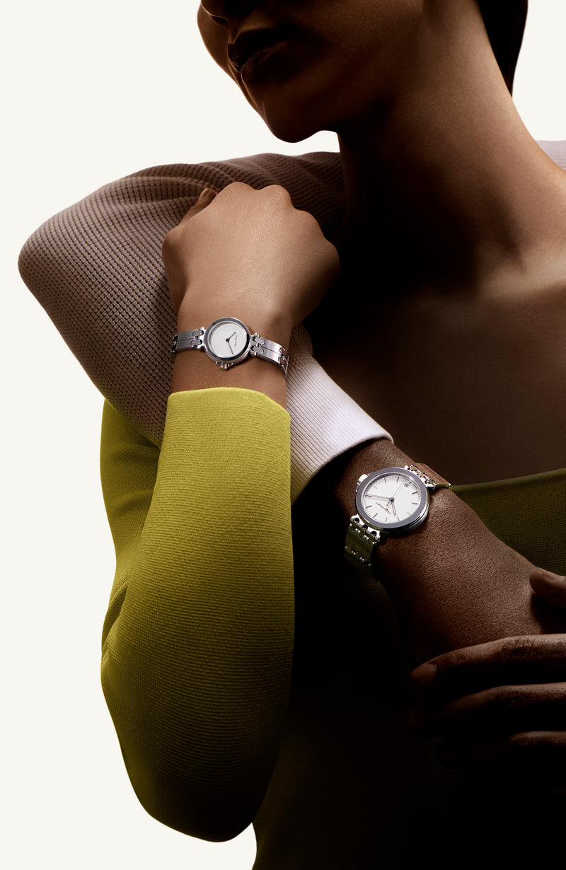 The 2024 collection aims for a more graphic design. The angles feature more pronounced edges, and the link’s proportion are very slightly readjusted. It is now presented with a delicately chamfered definition. The distribution of brushed and polished surfaces is finely revisited to better play with light. One of the most significant changes is linked to the bezel, becoming almost horizontal, and refined because of the Roman numeral indices’ removal. The lugs regain their iconic «ears,» and the date display returns to 6 o’clock, its elegant original position. Ultimately, the new Moorea gains greater strength and sobriety.